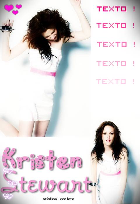 5. Aperte na ferramenta Texto e escreve seu primeiro nome. Eu escrevi Kristen, com a fonte Water Toy, mas você pode escrever com outra fonte. Dê Ok. Depois aperte novamente na ferramenta Texto e escreva seu sobrenome. Eu escrevi Stewart, com a fonte Noodle Script. Dê Ok. Você pode ajustar o seu nome como no resultado, mas se preferir, faça do seu jeito